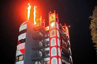 IMOLA 31 10 2025 AUTODROMO ENZO E DINO FERRARI "MONSTERLAND HALLOWEEN FESTIVAL NELLA FOTO LE FIAMME DI MONSTERLAND ILLUMINANO LA TORRE DELL' AUTODROMO ©SANNA - AGENZIA ALDO LIVERANI SAS