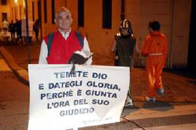 IMOLA 31 10 2025 AUTODROMO ENZO E DINO FERRARI "MONSTERLAND HALLOWEEN FESTIVAL NELLA FOTO UN PREDICATORE CONTRO LA FESTA DI HALLOWEENA ©SANNA - AGENZIA ALDO LIVERANI SAS