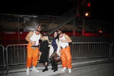 IMOLA 31 10 2025 AUTODROMO ENZO E DINO FERRARI ‘MONSTERLAND HALLOWEEN FESTIVAL’NELLA FOTO RAGAZZI GIOVANNI MASCHERATI PRIMA DI ENTRARE ALLA FESTA.DALLA TORRE DUE FIAMME DANNO IL BENVENUTO AI RAGAZZI ©SANNA - AGENZIA ALDO LIVERANI SAS