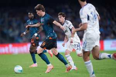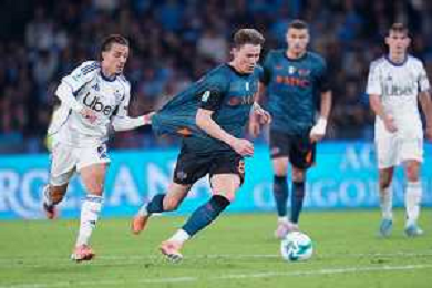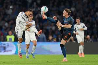 TVPM Napoli, Como Nella Foto: Leonardo Spinazzola, Maxence Caqueret Foto Mosca, Ag.Liverani- AGENZIA ALDO LIVERANI SAS -TVPM Napoli - Como Campionato calcio Serie A 01.11.2025