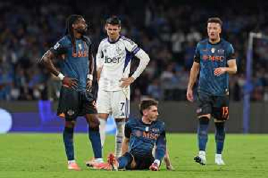 TVPM Napoli, Como Nella Foto: infortunio Billy Clifford Gilmour Foto Mosca, Ag.Liverani- AGENZIA ALDO LIVERANI SAS -TVPM Napoli - Como Campionato calcio Serie A 01.11.2025
