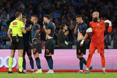 TVPM Napoli, Como Nella Foto: Zufferli arbitro Foto Mosca, Ag.Liverani- AGENZIA ALDO LIVERANI SAS -TVPM Napoli - Como Campionato calcio Serie A 01.11.2025