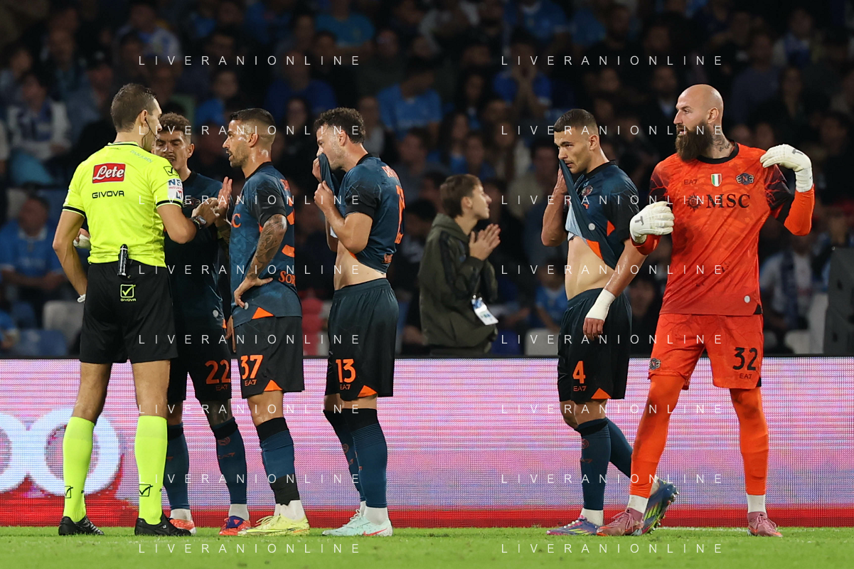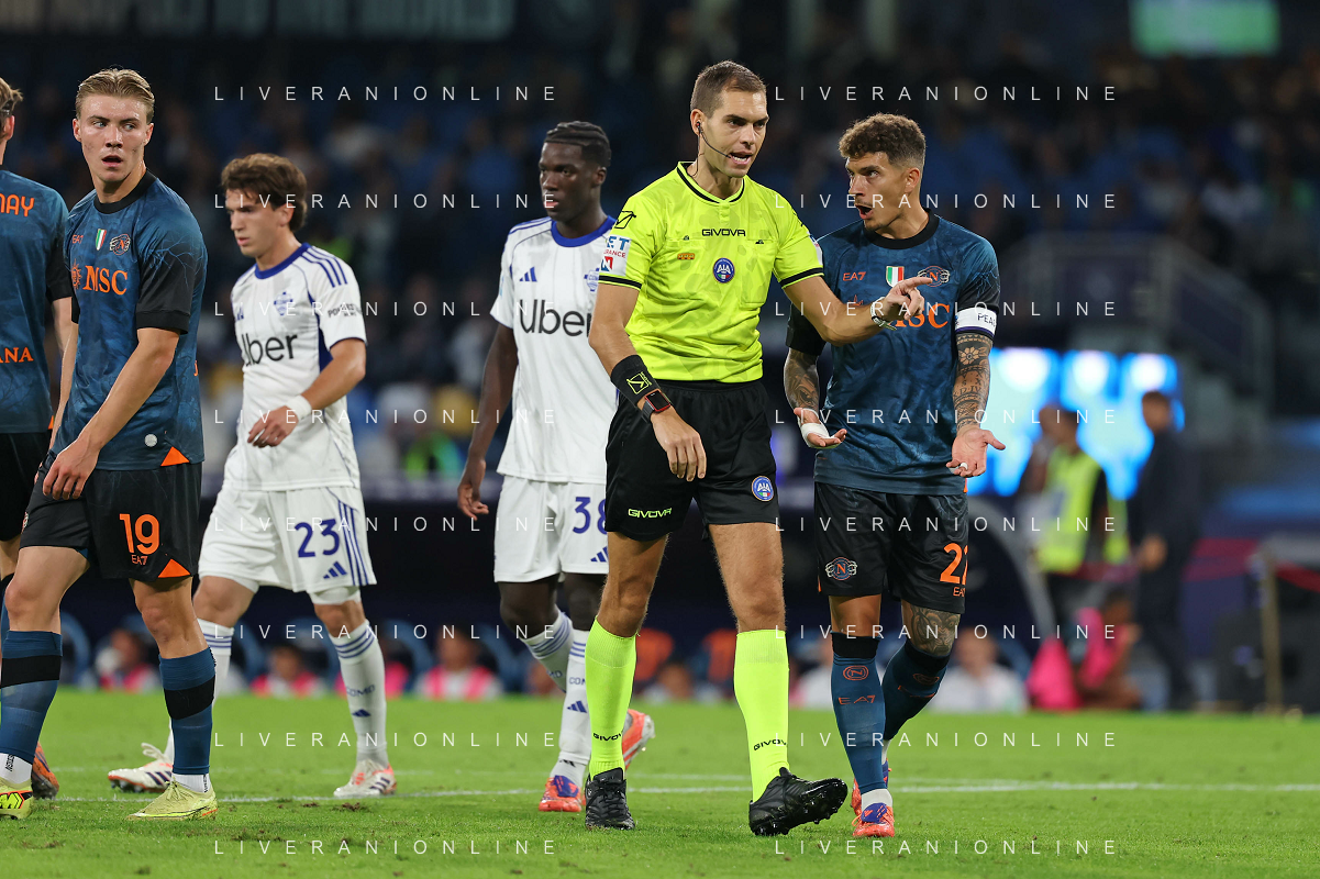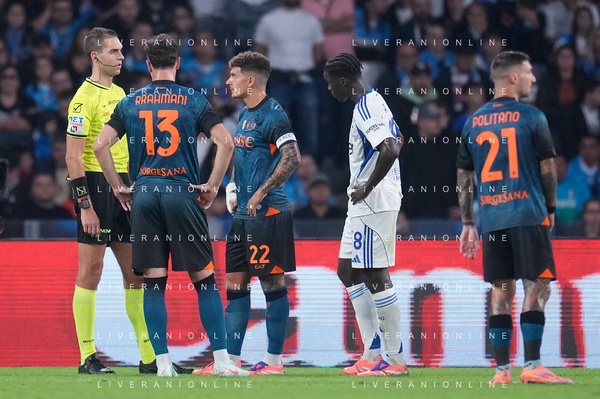 TVPM Napoli, Como Nella Foto: arbitro Zufferli, Giovanni Di Lorenzo Foto Mosca, Ag.Liverani- AGENZIA ALDO LIVERANI SAS -TVPM Napoli - Como Campionato calcio Serie A 01.11.2025
