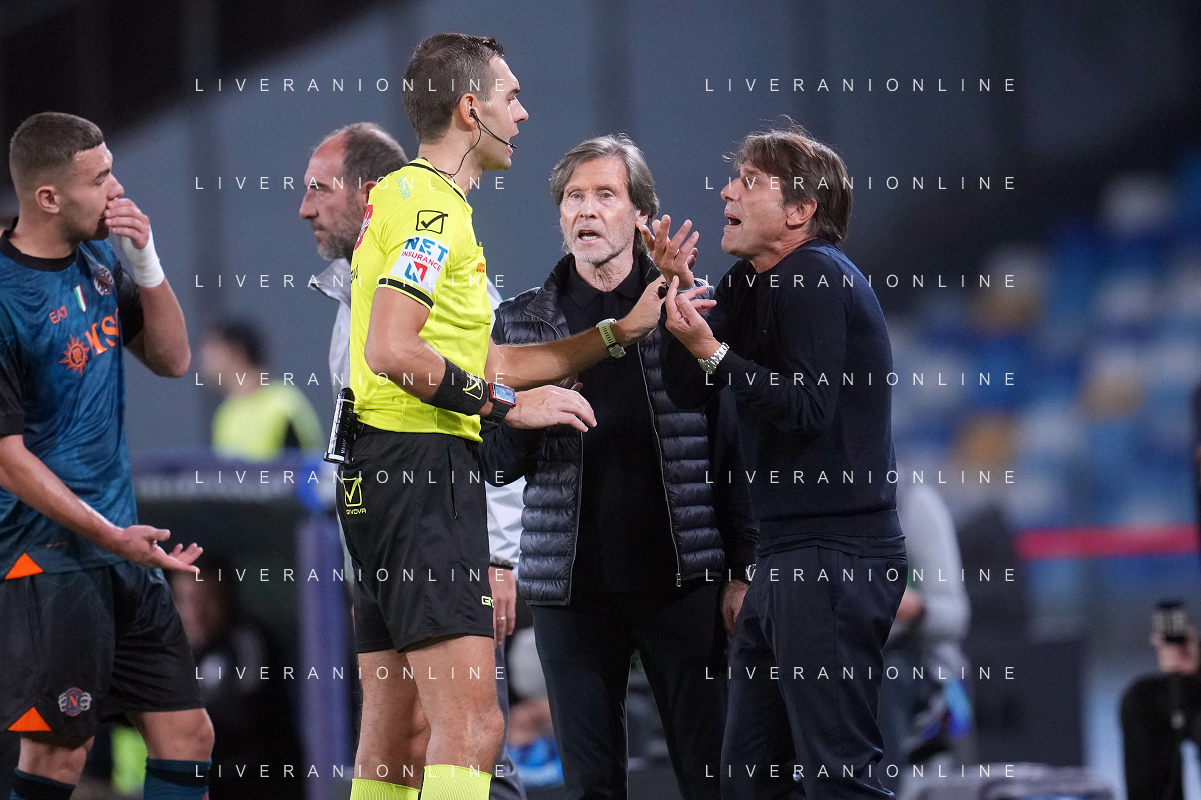 TVPM Napoli, Como Nella Foto: arbitro Zufferli, Antonio Conte Foto Mosca, Ag.Liverani- AGENZIA ALDO LIVERANI SAS -TVPM Napoli - Como Campionato calcio Serie A 01.11.2025