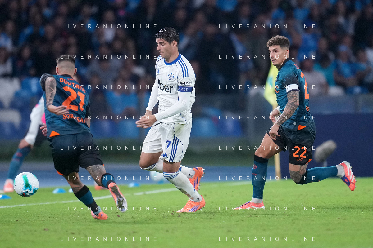 TVPM Napoli, Como Nella Foto: Alvaro Morata, Giovanni Di Lorenzo Foto Mosca, Ag.Liverani- AGENZIA ALDO LIVERANI SAS -TVPM Napoli - Como Campionato calcio Serie A 01.11.2025
