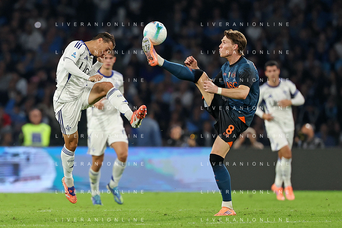 TVPM Napoli, Como Nella Foto: Scott Francis Mctominay,Maximo Perrone Foto Mosca, Ag.Liverani- AGENZIA ALDO LIVERANI SAS -TVPM Napoli - Como Campionato calcio Serie A 01.11.2025