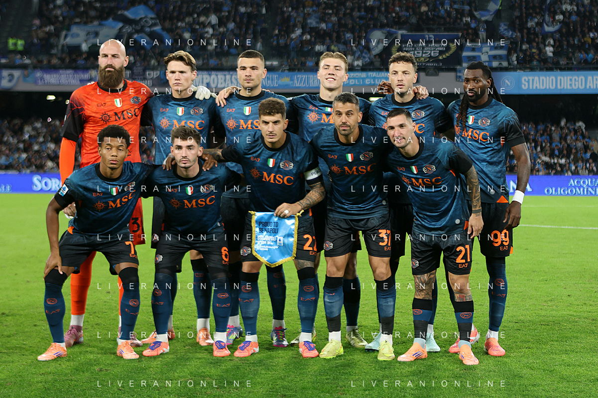 TVPM Napoli, Como Nella Foto: Formazione Squadra Napoli Foto Mosca, Ag.Liverani- AGENZIA ALDO LIVERANI SAS -TVPM Napoli - Como Campionato calcio Serie A 01.11.2025