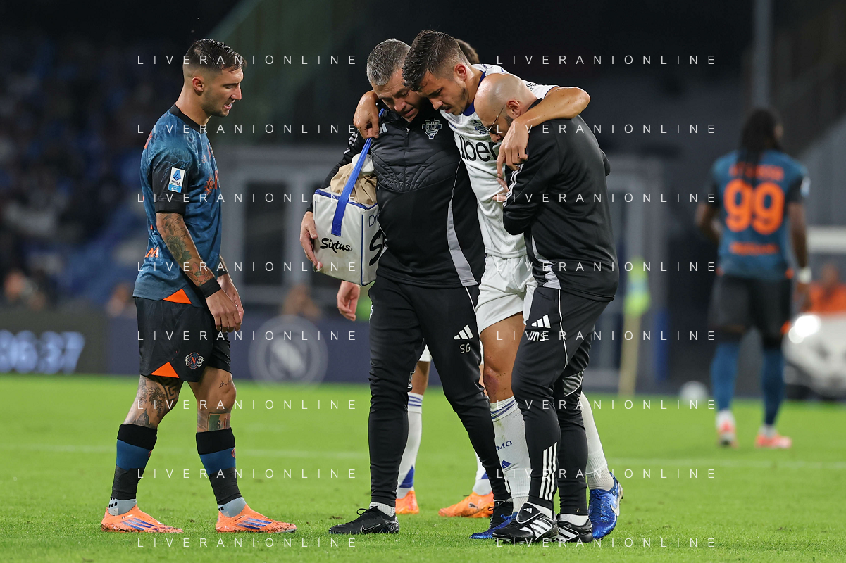 TVPM Napoli, Como Nella Foto: infortunio Marc Oliver Kempf Foto Mosca, Ag.Liverani- AGENZIA ALDO LIVERANI SAS -TVPM Napoli - Como Campionato calcio Serie A 01.11.2025