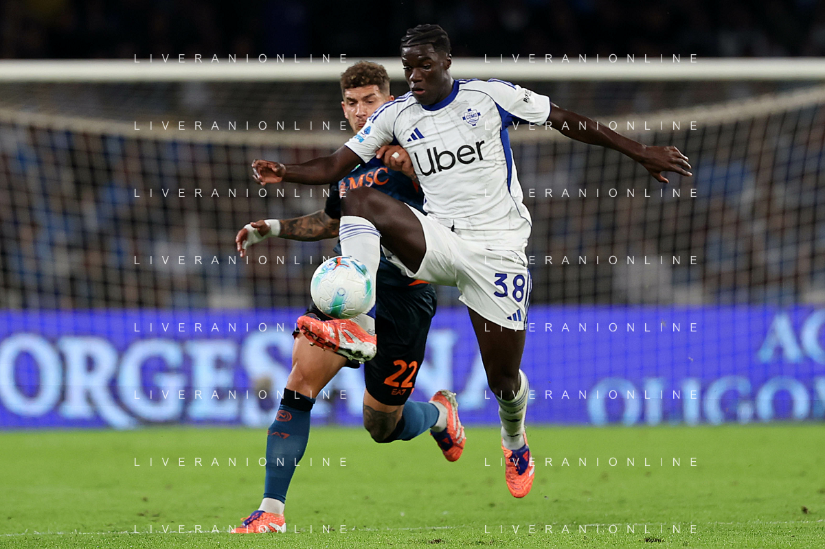 TVPM Napoli, Como Nella Foto: Assane Diao. Giovanni Di Lorenzo Foto Mosca, Ag.Liverani- AGENZIA ALDO LIVERANI SAS -TVPM Napoli - Como Campionato calcio Serie A 01.11.2025