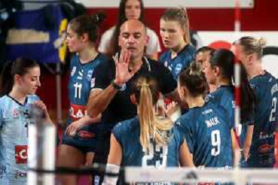 IMOLA 02 11 2025 CLAI IMOLA PALLAVOLO-NUVOLI ALTAFRATTE PADOVA SERIE A2 1-3 NELLA FOTO HUCK HOOGERS,ARIANNA GAMBINO E POLINA MALIK DOPO LA PARTITA PERSA CLAI IMOLA ©SANNA - AGENZIA ALDO LIVERANI SAS