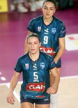 IMOLA 02 11 2025 CLAI IMOLA PALLAVOLO-NUVOLI ALTAFRATTE PADOVA SERIE A2 1-3 NELLA FOTO SOFIA CONTI E POLINA MALIK CLAI IMOLA ©SANNA - AGENZIA ALDO LIVERANI SAS
