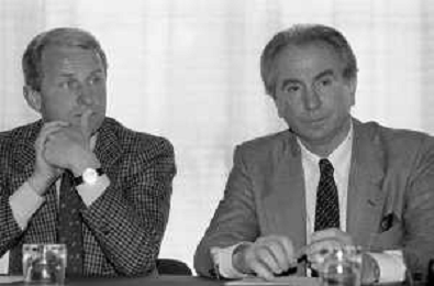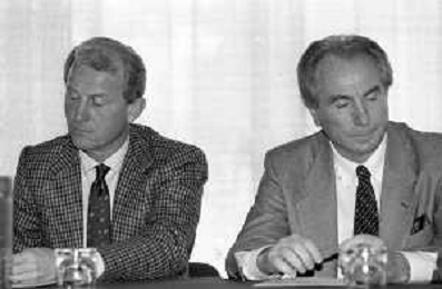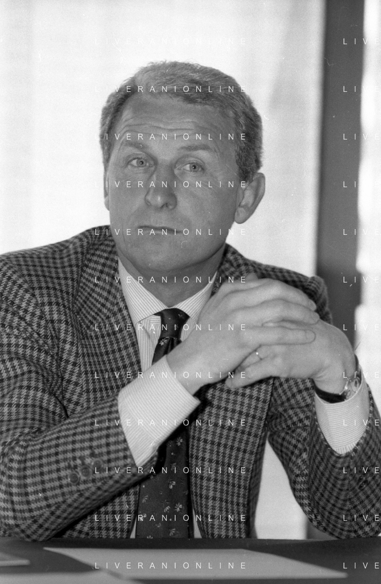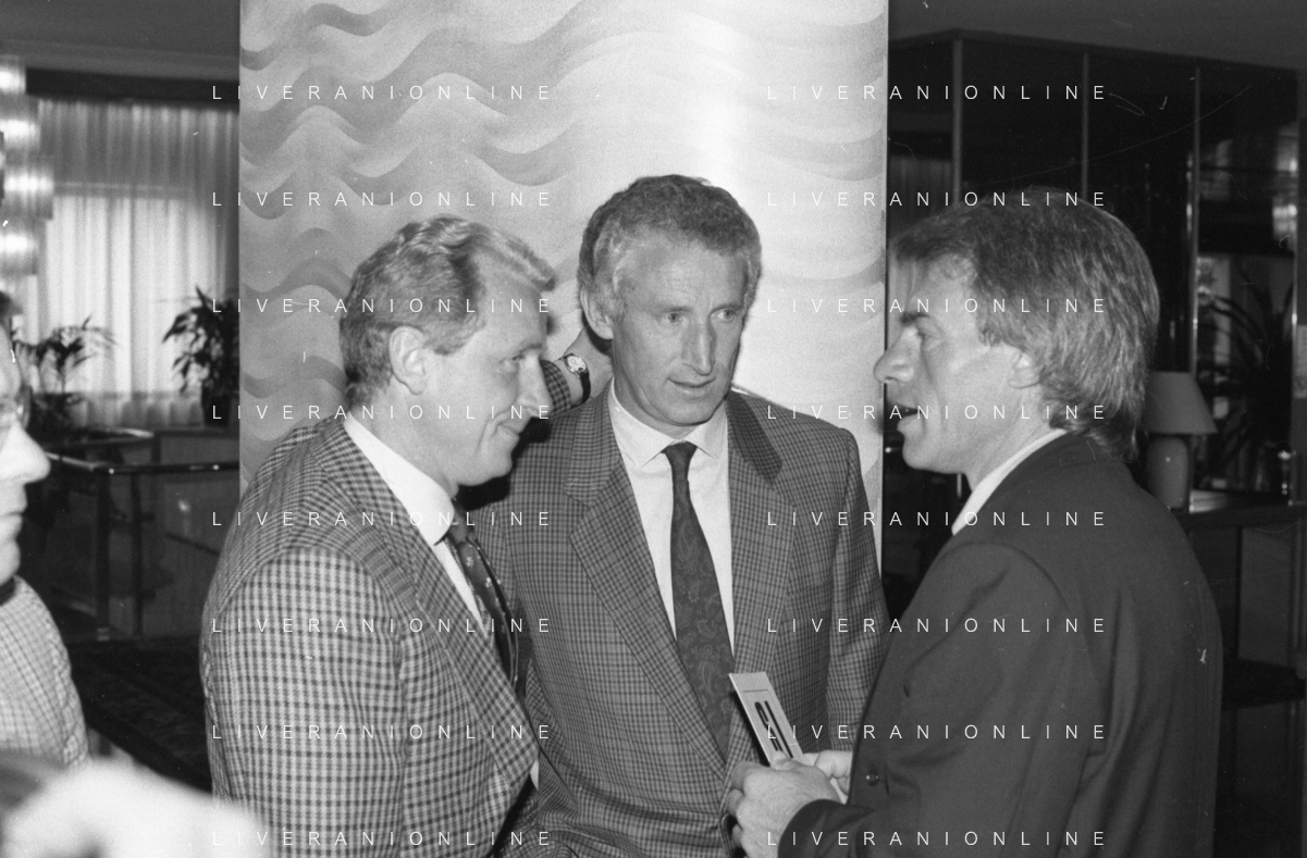 NEG- RETROSPETTIVA GIOVANNI TRAPATTONI ALLENATORE INTER NELLA FOTO GIOVANNI TRAPATTONI CON ALFREDO MAGNI E NEVIO SCALA NELL’ANNO 1988 AG ALDO LIVERANI SAS