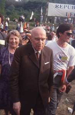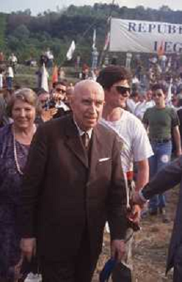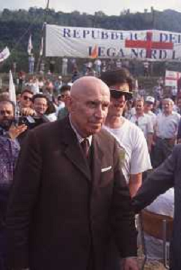 DIAP-RETROSPETTIVA GIANFRANCO MIGLIO POLITICO NELLA FOTO GIANFRANCO MIGLIO A PONTIDA NELL'ANNO 1992 AG ALDO LIVERANI SAS