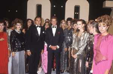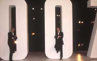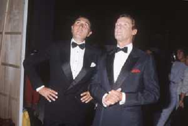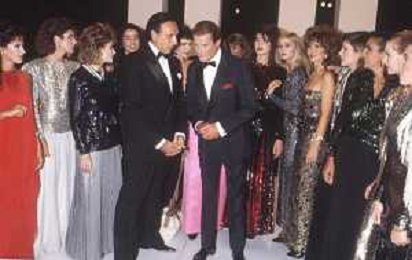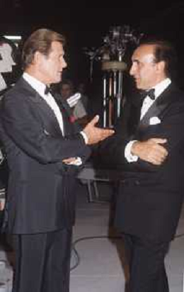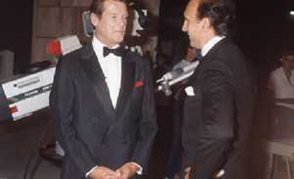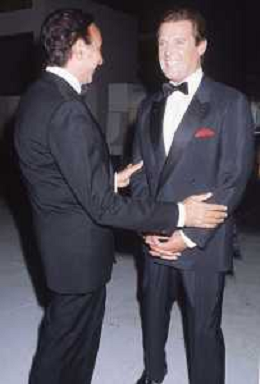 DIAP-RETROSPETTIVA ROGER MOORE ATTORE NELLA FOTO ROGER MOORE CON PIPPO BAUDO A ROMA NELL'ANNO 1985 AG ALDO LIVERANI SAS