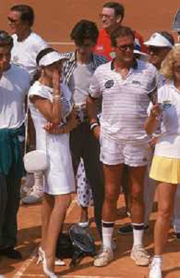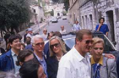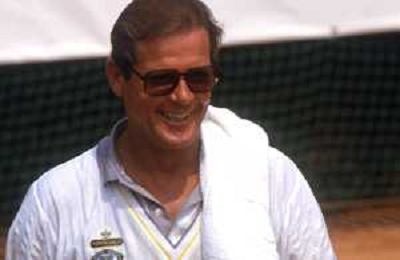 DIAP-RETROSPETTIVA ROGER MOORE ATTORE NELLA FOTO ROGER MOORE A MONTECARLO AL TORNEO DI TENNIS NELL'ANNO 1988 AG ALDO LIVERANI SAS