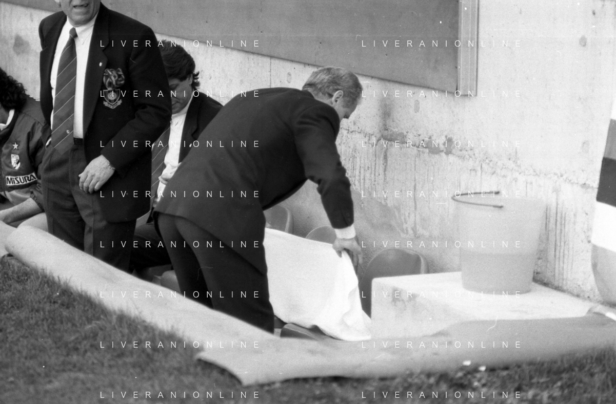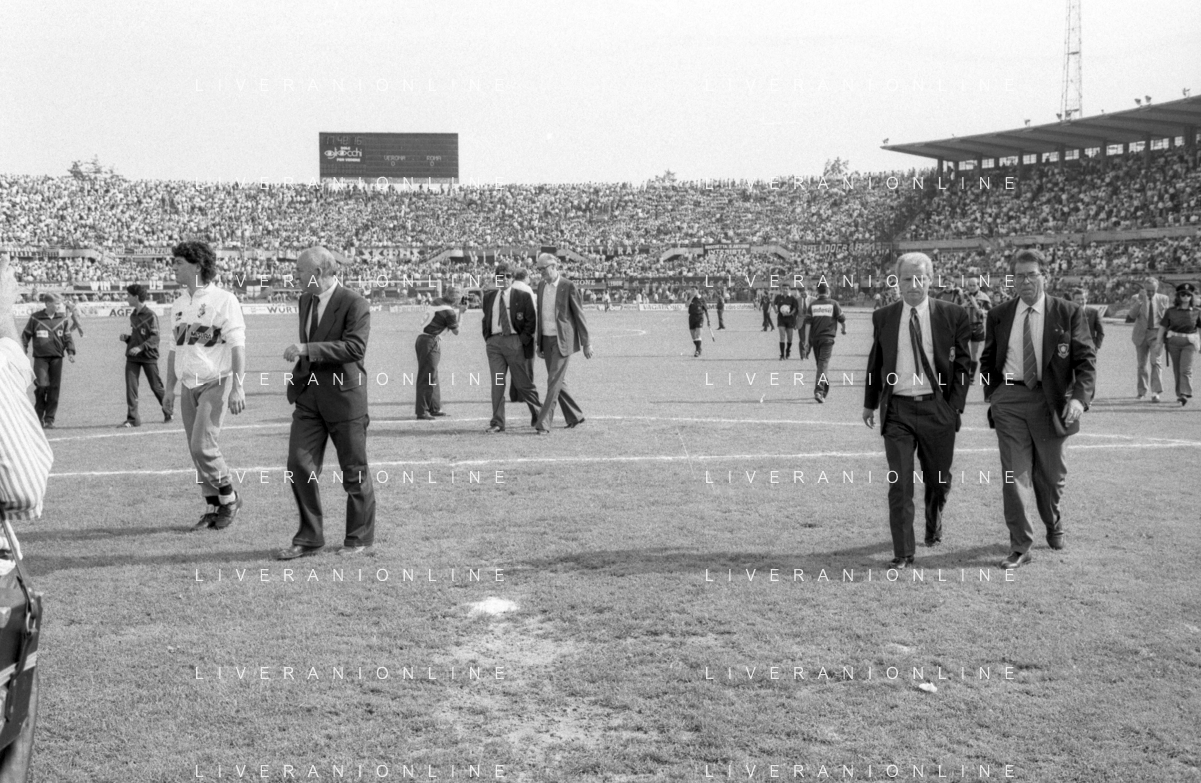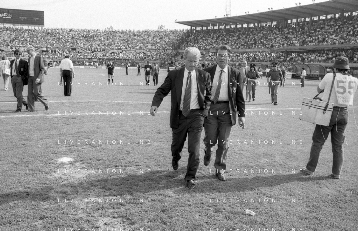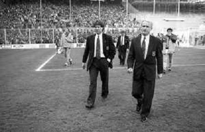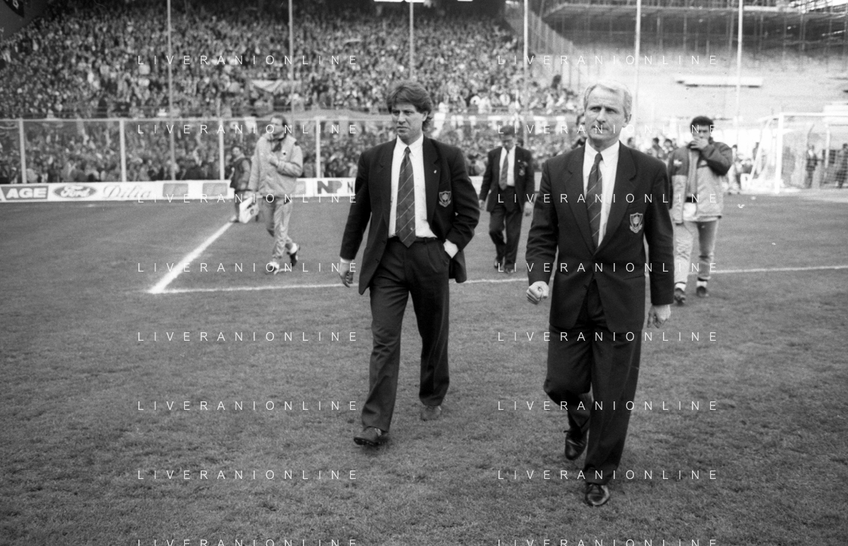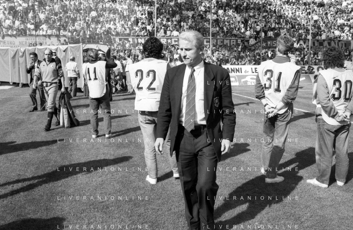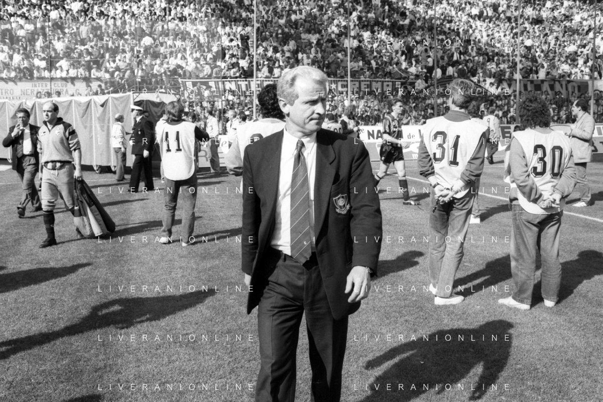 NEG- RETROSPETTIVA GIOVANNI TRAPATTONI ALLENATORE INTER NELLA FOTO GIOVANNI TRAPATTONI NELL’ANNO 1989 ENTRA IN CAMPO AG ALDO LIVERANI SAS