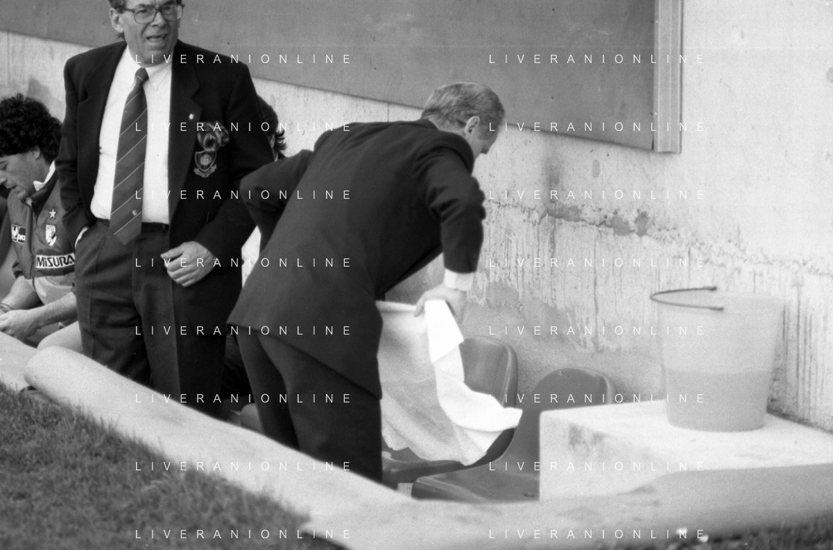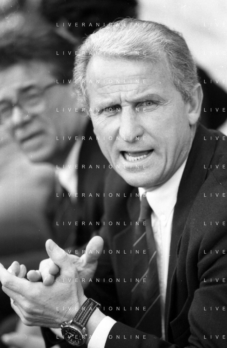 NEG- RETROSPETTIVA GIOVANNI TRAPATTONI ALLENATORE INTER NELLA FOTO GIOVANNI TRAPATTONI NELL’ANNO 1989 IN PANCHINA AG ALDO LIVERANI SAS