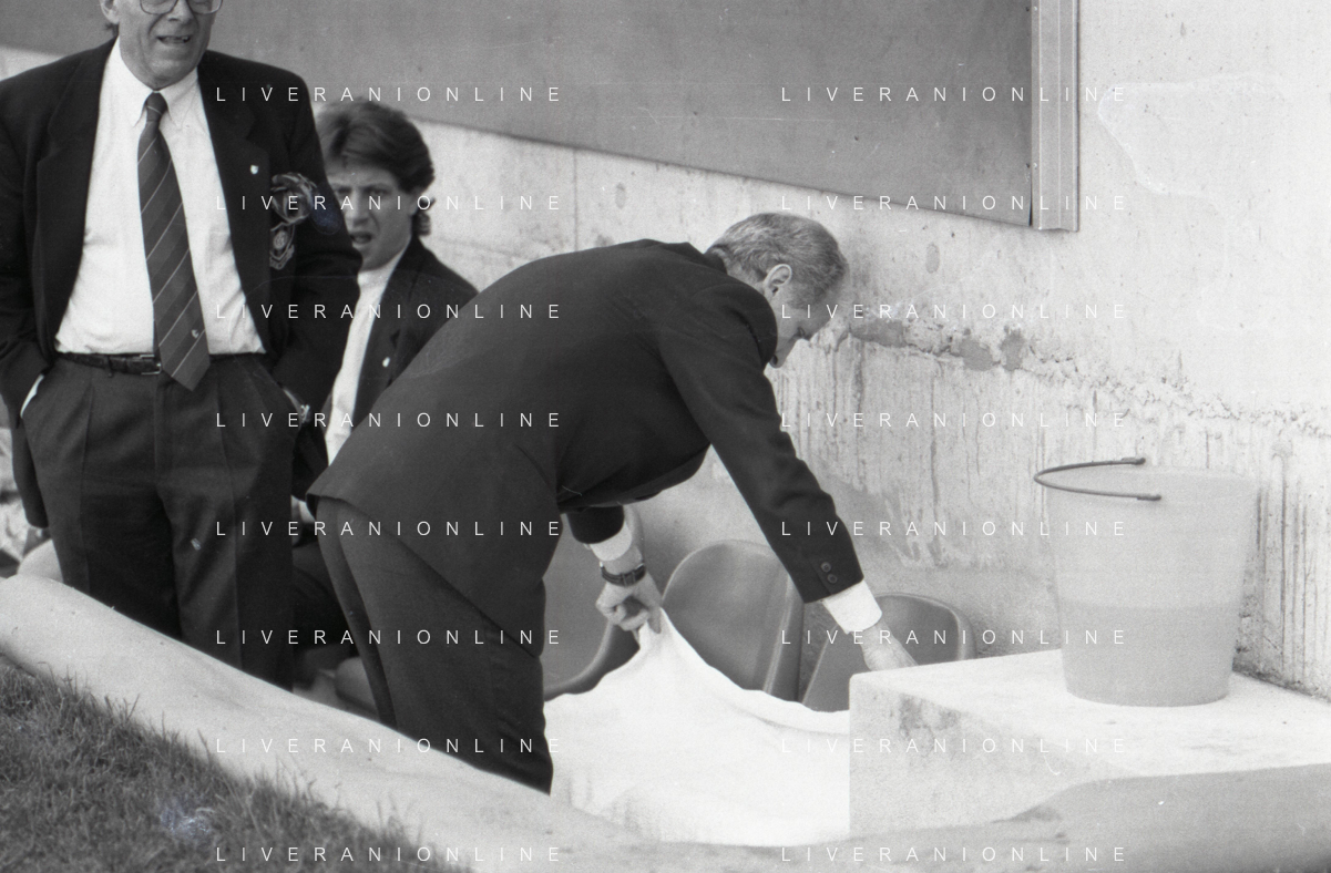 NEG- RETROSPETTIVA GIOVANNI TRAPATTONI ALLENATORE INTER NELLA FOTO GIOVANNI TRAPATTONI NELL’ANNO 1989 DURANTE L’ALLENAMENTO AG ALDO LIVERANI SAS