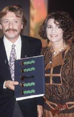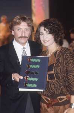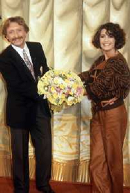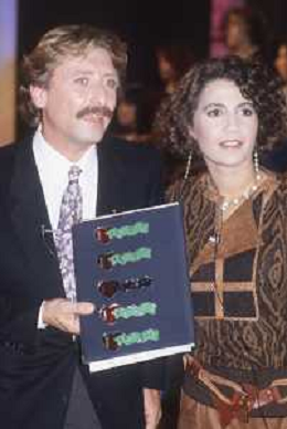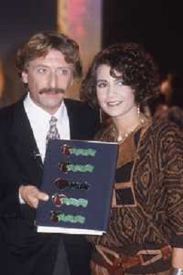DIAP-RETROSPETTIVA ROBERTA MANFREDI PRESENTATRICE TELEVISIVA E ATTRICE NELLA FOTO ROBERTA MANFREDI CON CLAUDIO SORRENTINO TRASMISSIONE TELEVISIVA “TANDEM “ ANNO 1984 A ROMA FOTO EDGRADO DELLA SCORCIOSA-AG ALDO LIVERANI SAS