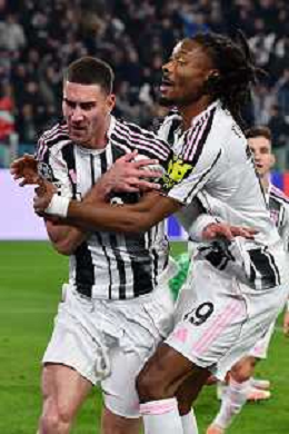 TVPG Juventus FC vs SCP Sporting Lisbona nella foto Dusan Vlahovic (Fc Juventus) e Federico Gatti (Fc Juventus) Esultanza dopo la rete 04-11-2025 Allianz Stadium, Torino (ITA) - Quarta Giornata Champions League 2025/26 ©TVPG Pasquale Golia - AGENZIA ALDO LIVERANI SAS