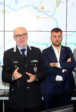 IMOLA 05 11 2025 conferenza stampa di presentazione della RIQUALIFICAZIONE DELLA CENTRALE OPERATIVA del Corpo Unico di Polizia Locale NELLA FOTO MASSIMILIANO GALLONI COMMANDANTE POLIZIA LOCALE DI IMOLA E SINDACO DI IMOLA MARCO PANIERI FOTO GIANNI SANNA-AG ALDO LIVERANI SAS
