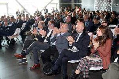IMOLA 06 11 2025 AUTODROMO ENZO E DINO FERRARI ‘INNOVATION DAYS 2025 - EMILIA-ROMAGNA’ ,PROMOSSO DA IL SOLE 24 ORE IN COLLABORAZIONE CON CONFINDUSTRIA NELLA FOTO PUBBLICO DA SINISTRA DIRETTORE DEL GIORNALE IL SOLE 24 ORE FABIO TAMBURINI,DIRETTORE DELL'AUTODROMO DI IMOLA PIETRO BENVENUTI,ALESSANDRO CURTI PRESIDENTE CONFINDUSTRIA IMOLA ©SANNA - AGENZIA ALDO LIVERANI SAS