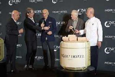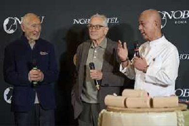Roma 06 Novembre 2025 Robert De Niro presenzia all’apertura del nuovo Nobu Hotel in Via Veneto a Roma Nella Foto: Trevor Horwell, Meir Teper, Robert De Niro, Nobu Matsuhisa Foto Credit: Andrea Bracaglia - AGENZIA ALDO LIVERANI SAS