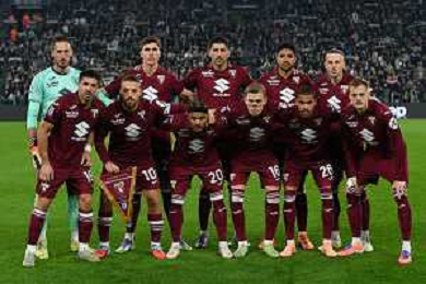 Torino 08.11.2025 Allianz Stadium @Manuela Viganti /Ag. Aldo Liverani sas Juventus vs Torino Campionato Calcio Serie A Enilive 2025/2026 11a giornata Nella foto: la formazione del torino da sx verso dx: alberto paleari, cesare casadei, guillermo maripan, saul coco, ardian ismajli, giovanni simeone, nikola vlasic, valentino lazaro, marcus pedersen, cyril ngonge, ivan ilic