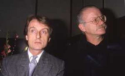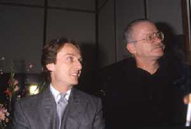 DIAP-RETROSPETTIVA LUCA CORDERO DI MONTEZEMOLO IMPRENDITORE E DIRIGENTE D'AZIENDA NELLA FOTO LUCA CORDERO DI MONTEZEMOLO CON GINO PAOLI NELL'ANNO 1985 AG ALDO LIVERANI SAS