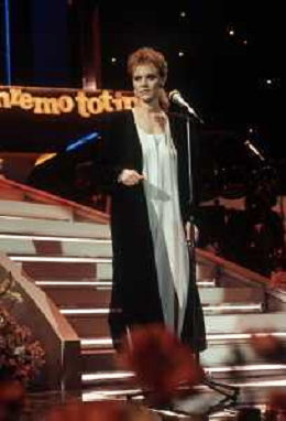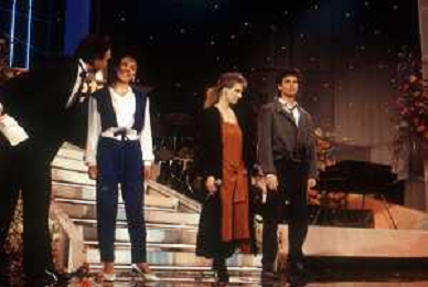 DIAP- RETROSPETTIVA LENA BIOLCATI CANTANTE NELLA FOTO LENA BIOLCATI AL FESTIVAL DI SANREMO SEZIONE NUOVE PROPOSTE NELL’ANNO 1985 CON PIPPO BAUDO, MIANI E CINZIA CORRADO ( VINCITRICE ) AGENZIA ALDO LIVERANI SAS