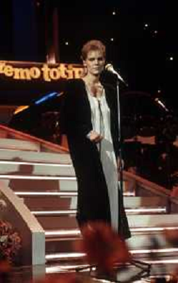 DIAP- RETROSPETTIVA LENA BIOLCATI CANTANTE NELLA FOTO LENA BIOLCATI AL FESTIVAL DI SANREMO SEZIONE NUOVE PROPOSTE NELL’ANNO 1985 AGENZIA ALDO LIVERANI SAS