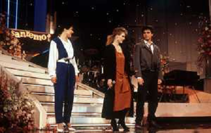 DIAP- RETROSPETTIVA LENA BIOLCATI CANTANTE NELLA FOTO LENA BIOLCATI AL FESTIVAL DI SANREMO SEZIONE NUOVE PROPOSTE NELL’ANNO 1985 CON MIANI E CINZIA CORRADO ( VINCITRICE ) AGENZIA ALDO LIVERANI SAS