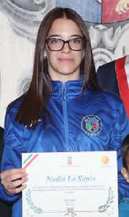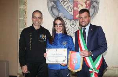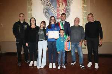 IMOLA 03 11 2025 BRONZO MONDIALE PER L'IMOLESE NADIA LO SAPIO:IL SINDACO MARCO PANIERI LA RICEVE IN MUNICIPIO NELLA FOTO NADIA LO SAPIO ©SANNA - AGENZIA ALDO LIVERANI SAS