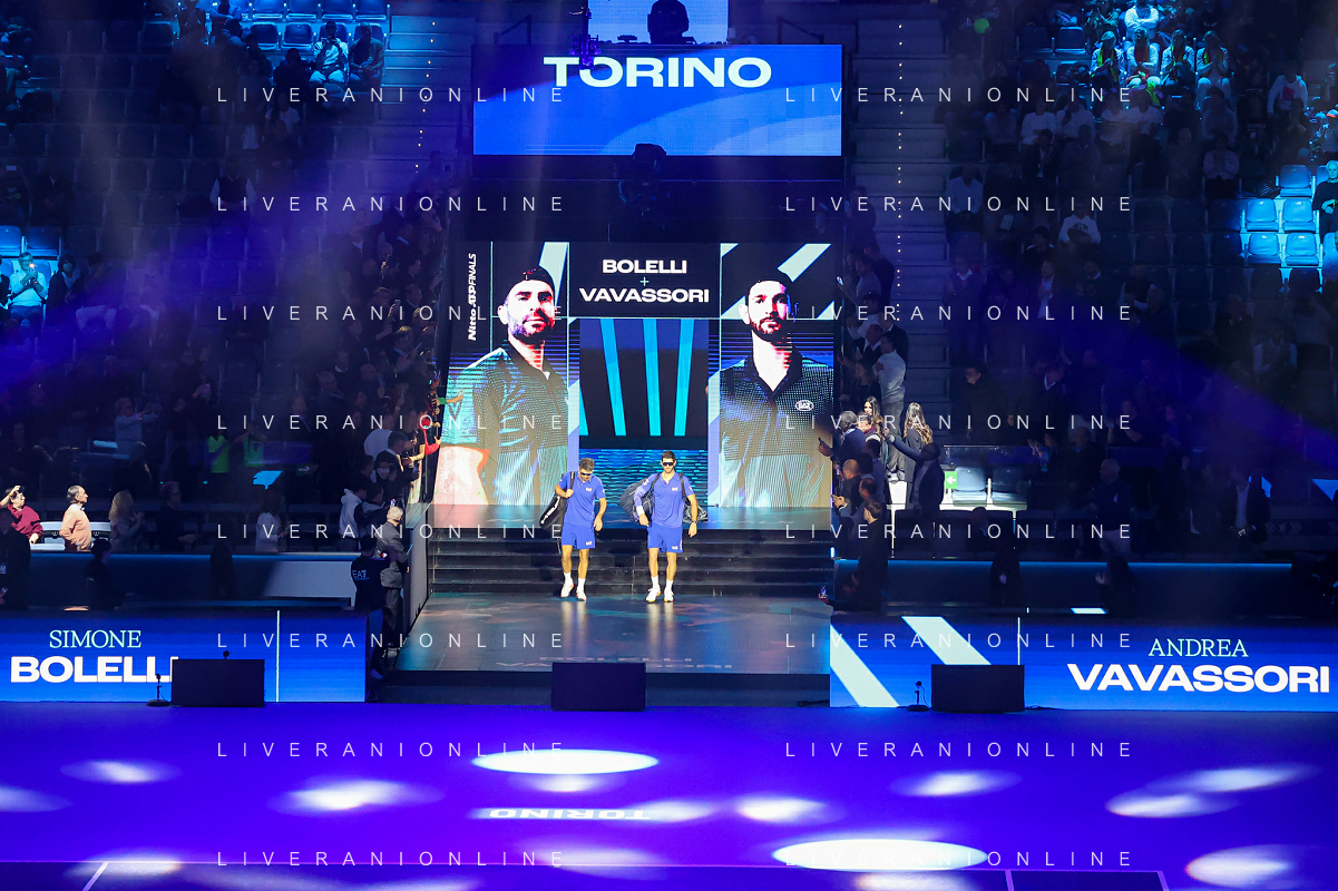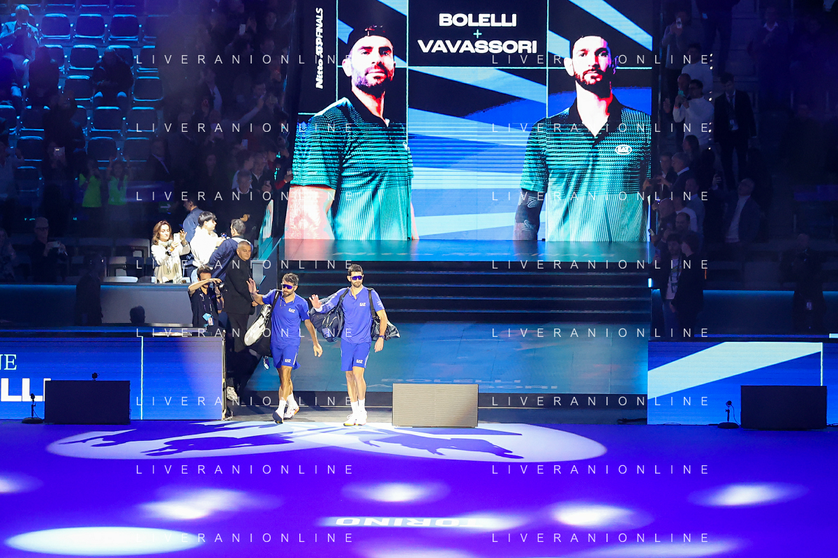 TVRCOR Tennis Nitto Atp Finals 2025 Inalpi Arena Torino 11-11-2025 Round Robin doppio Marcel Granollers e Horacio Zeballos vs Simone Bolelli e Andrea Vavassori nella foto ingresso in campo Simone Bolelli e Andrea Vavassori FOTO ROBERTA CORRADIN-AG ALDO LIVERANI SAS