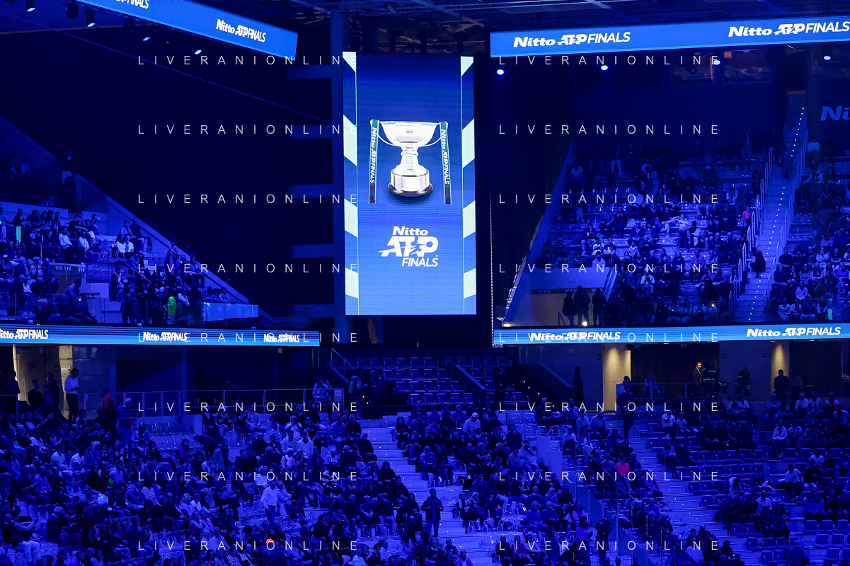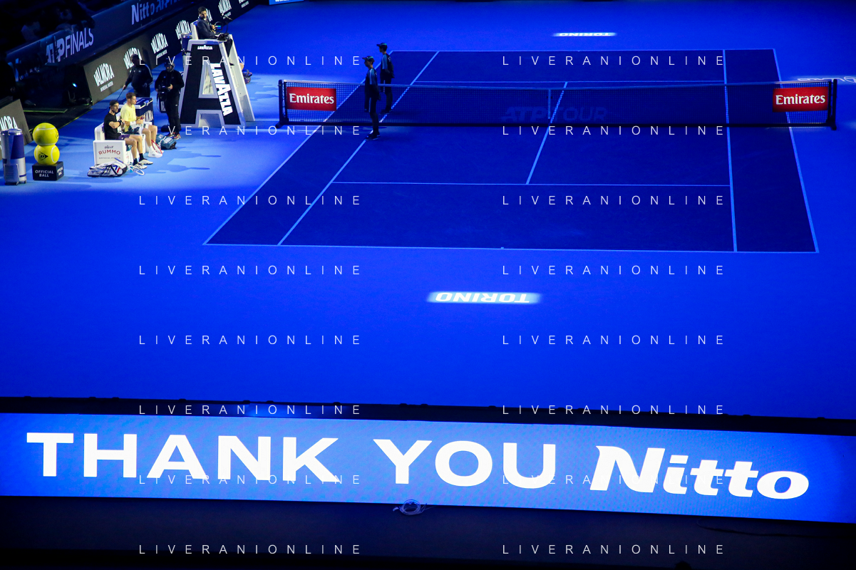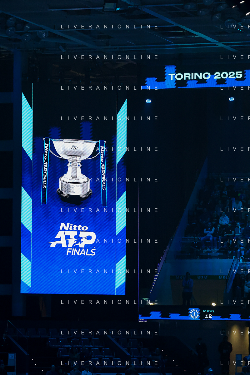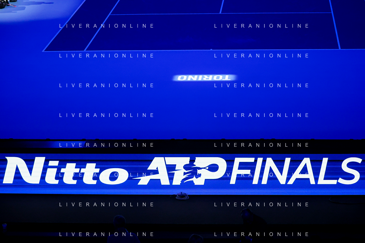 TVRCOR Tennis Nitto Atp Finals 2025 Inalpi Arena Torino 12-11-2025 Round Robin doppio Harri HELIOVAARA (FIN) e Henry PATTEN (GBR) vs Joe SALISBURY (GBR) e Neal SKUPSKI (GBR) nella foto logo Torino campo centrale FOTO ROBERTA CORRADIN-AG ALDO LIVERANI SAS