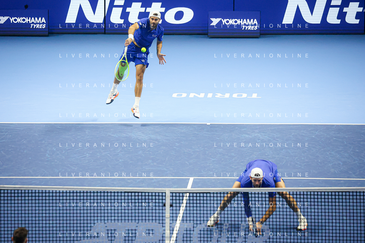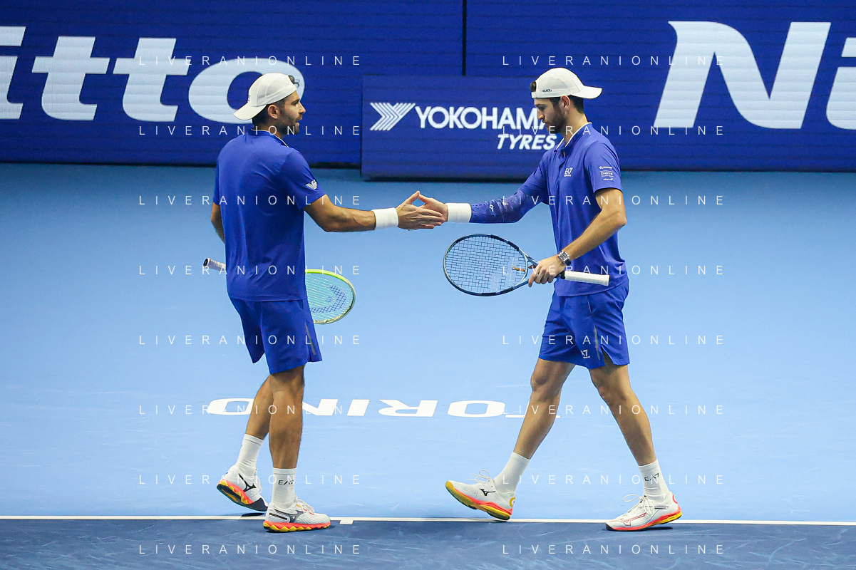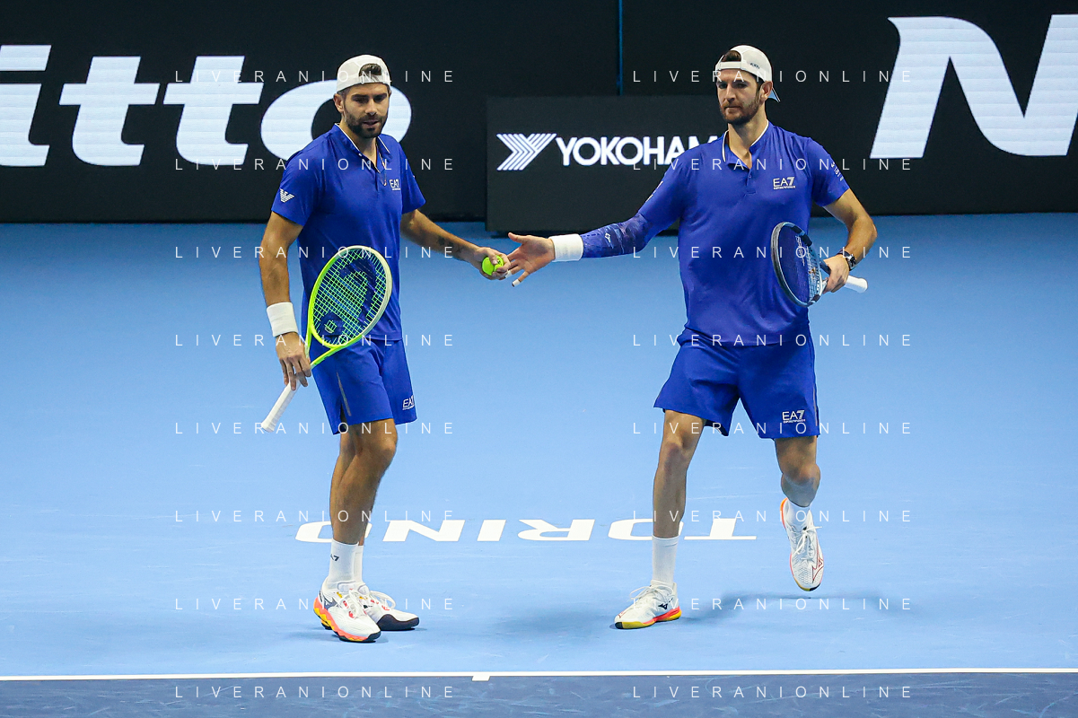 TVRCOR Tennis Nitto Atp Finals 2025 Inalpi Arena Torino 11-11-2025 Round Robin doppio Marcel Granollers e Horacio Zeballos vs Simone Bolelli e Andrea Vavassori nella foto Simone Bolelli e Andrea Vavassori FOTO ROBERTA CORRADIN-AG ALDO LIVERANI SAS