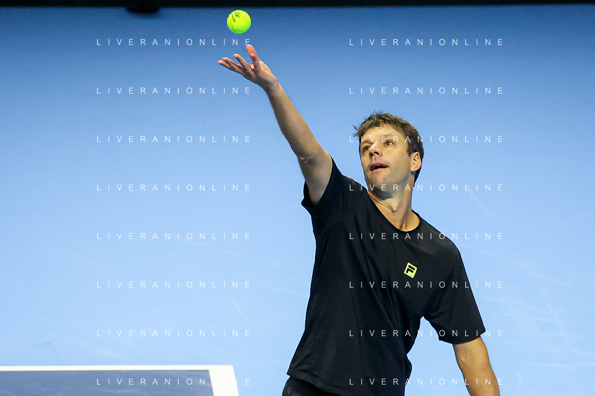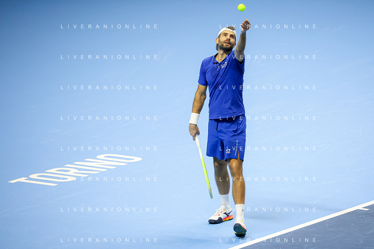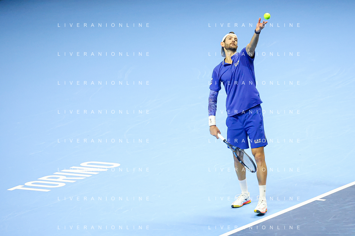 TVRCOR Tennis Nitto Atp Finals 2025 Inalpi Arena Torino 11-11-2025 Round Robin doppio Marcel Granollers e Horacio Zeballos vs Simone Bolelli e Andrea Vavassori nella foto Simone Bolelli al servizio FOTO ROBERTA CORRADIN-AG ALDO LIVERANI SAS