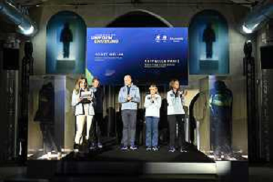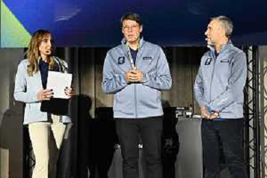 TVRG Divise volontari Milano Cortina 2026 nella foto da SX Marta Pagnini, Guillaume Meyzenq e Andrea Varnier Milano 12-11-2025 Presentate le divise per i volontari che lavoreranno ai Giochi Olimpici invernali Milano Cortina 2026 foto Roberto Garavaglia/Agenzia Aldo Liverani sas