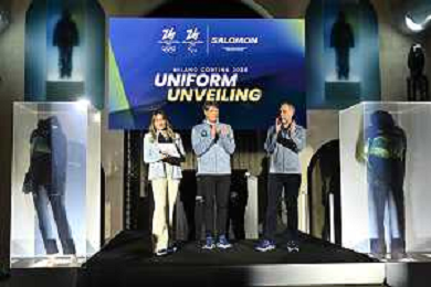 TVRG Divise volontari Milano Cortina 2026 nella foto le divise Milano 12-11-2025 Presentate le divise per i volontari che lavoreranno ai Giochi Olimpici invernali Milano Cortina 2026 foto Roberto Garavaglia/Agenzia Aldo Liverani sas