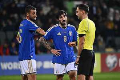 TVRG Moldova vs Italia nella foto Bryan Cristante (Italia) e Sandro Tonali (Italia) a colloquio con l'arbitro Mykola Balakin (UKR) Chisinau (MOL) 13-11-2025 Stadio Zimbru Moldova vs Italia Qualificazioni Mondiali 2026 Gruppo I - 9a giornata foto Roberto Garavaglia/Agenzia Aldo Liverani sas