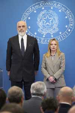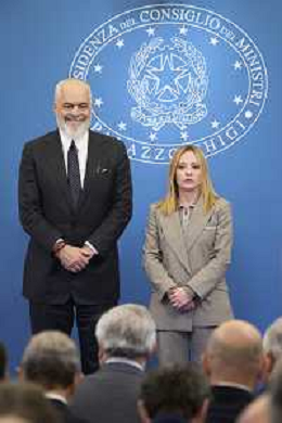 Roma 13 Novembre 2025 Conferenza stampa del Presidente del Consiglio Giorgia Meloni e del Primo Ministro Albanese Edi Rama a seguito del Primo Vertice Intergovernativo tra Italia ed Albania. Nella Foto: Giorgia Meloni, Edi Rama Foto Credit: Andrea Bracaglia- AGENZIA ALDO LIVERANI SAS