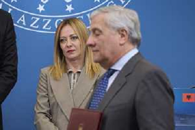 Roma 13 Novembre 2025 Conferenza stampa del Presidente del Consiglio Giorgia Meloni e del Primo Ministro Albanese Edi Rama a seguito del Primo Vertice Intergovernativo tra Italia ed Albania. Nella Foto: Antonio Tajani, Giorgia Meloni Foto Credit: Andrea Bracaglia- AGENZIA ALDO LIVERANI SAS