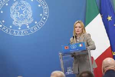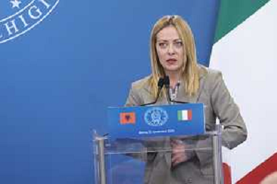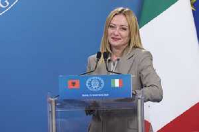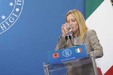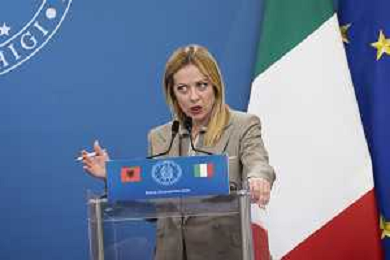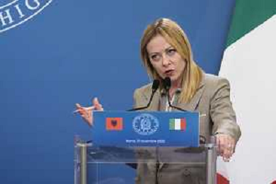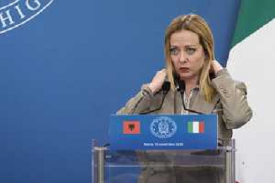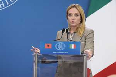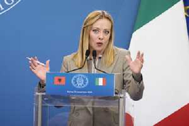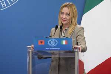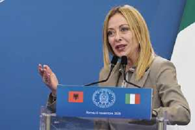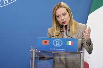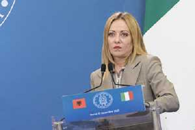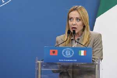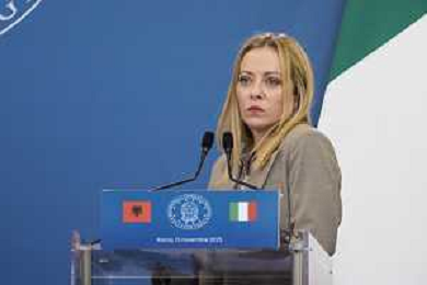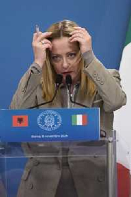 Roma 13 Novembre 2025 Conferenza stampa del Presidente del Consiglio Giorgia Meloni e del Primo Ministro Albanese Edi Rama a seguito del Primo Vertice Intergovernativo tra Italia ed Albania. Nella Foto: Giorgia Meloni, Foto Credit: Andrea Bracaglia- AGENZIA ALDO LIVERANI SAS