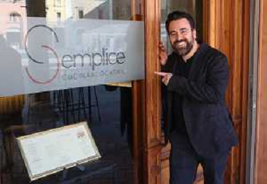 IMOLA 14 11 2025 PIAZZA MATTEOTTI CONFERENZA STAMPA un anno dopo l’apertura DEL RISTORANTE SEMPLICE NELLA FOTO MAX MASCIA DAVANTI AL RISTORANTE ©SANNA - AGENZIA ALDO LIVERANI SAS