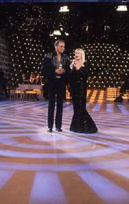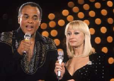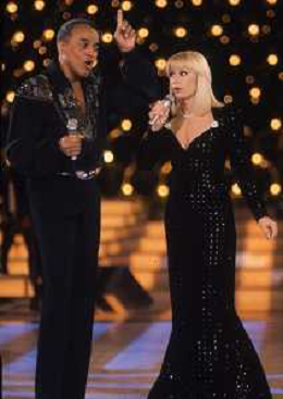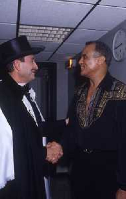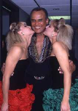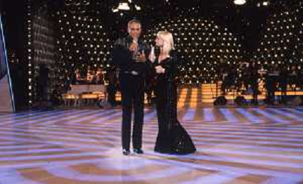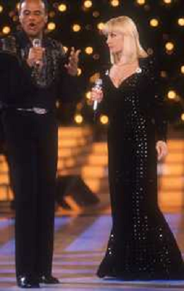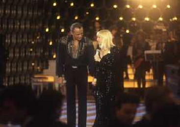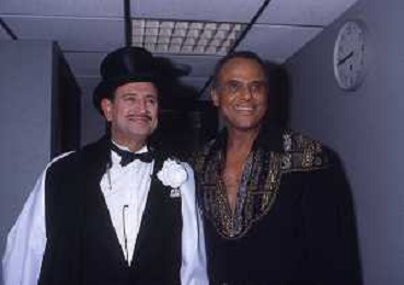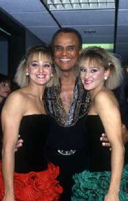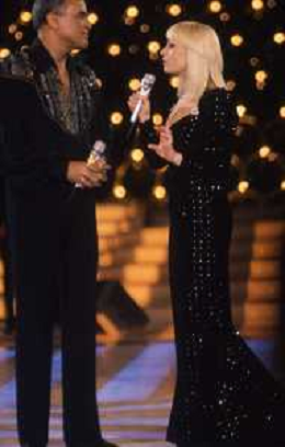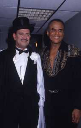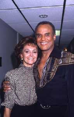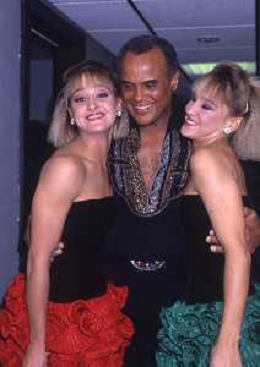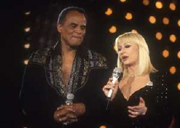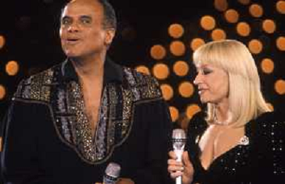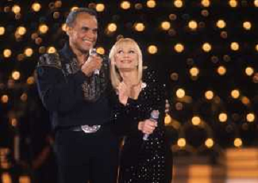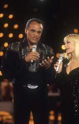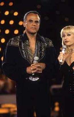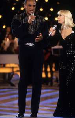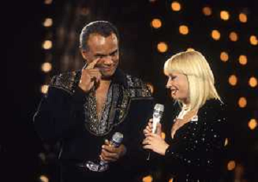 DIAP-RETROSPETTIVA -HARRY BELEFONTE CANTANTE NELLA FOTO HARRY BELAFONTECON RAFFAELLA CARRA' NELL'ANNO 1988 A MILANO OSPITE DELLA TRSMISSIONE TELEVISIVA “RAFFAELLA CARRA' SHOW “ AG ALDO LIVERANI SAS