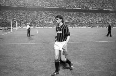NEG-MILAN - VERONA COPPA ITALIA 1982-1983 QUARTI DI FINALE GARA DI RITORNO MILANO 01.06.1983 NELLA FOTO FRANCO BARESI CAPITANO MILAN AG ALDO LIVERANI SAS