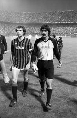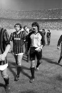 NEG-MILAN - VERONA COPPA ITALIA 1982-1983 QUARTI DI FINALE GARA DI RITORNO MILANO 01.06.1983 NELLA FOTO FRANCO BARESI E GIULIO NUCIARI AG ALDO LIVERANI SAS