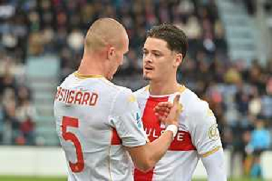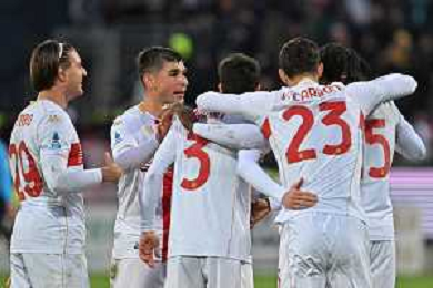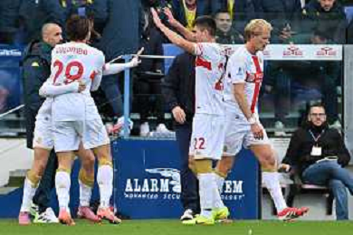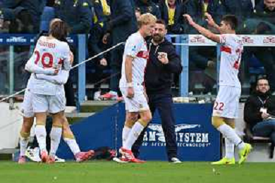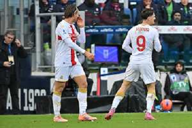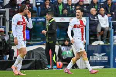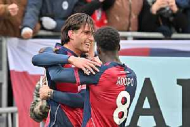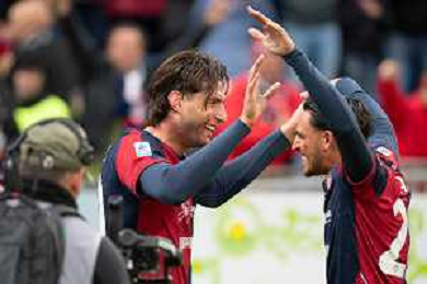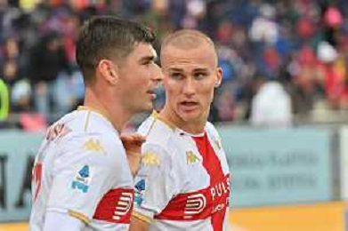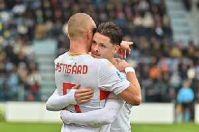 22-11-2025. Cagliari calcio-Genoa F.C: calcio, 12° giornta serie A 2025/2026, campionato calcio Italia, stadio Unipol Domus Cagliari. Foto Salvatore Moi/Agenzia Aldo Liverani s.as. Nella foto: Gol Genoa in trasferta contro Cagliari allo stadio Unipol Domus. Segna: Leo Ostigard Genoa ©MOI SALVATORE - AGENZIA ALDO LIVERANI SAS