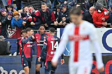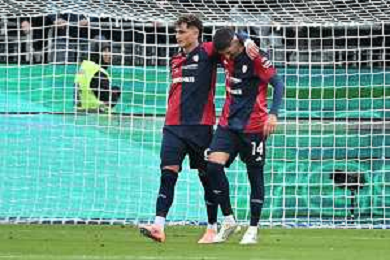 22-11-2025. Cagliari calcio-Genoa F.C: calcio, 12° giornta serie A 2025/2026, campionato calcio Italia, stadio Unipol Domus Cagliari. Foto Salvatore Moi/Agenzia Aldo Liverani s.as. Nella foto: Gol Cagliari in casa allo stadio Unipol Domus contro Genoa. Segna: Aaron Martin Genoa ©MOI SALVATORE - AGENZIA ALDO LIVERANI SAS
