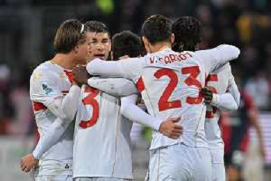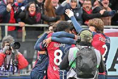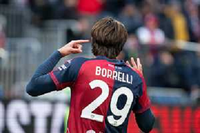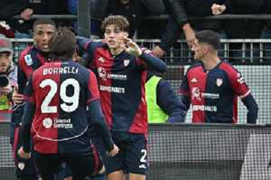 22-11-2025. Cagliari calcio-Genoa F.C: calcio, 12° giornta serie A 2025/2026, campionato calcio Italia, stadio Unipol Domus Cagliari. Foto Salvatore Moi/Agenzia Aldo Liverani s.as. Nella foto: Gol Cagliari in casa allo stadio Unipol Domus contro Sassuolo. Segna: Gennaro Borrelli Cagliari ©MOI SALVATORE - AGENZIA ALDO LIVERANI SAS